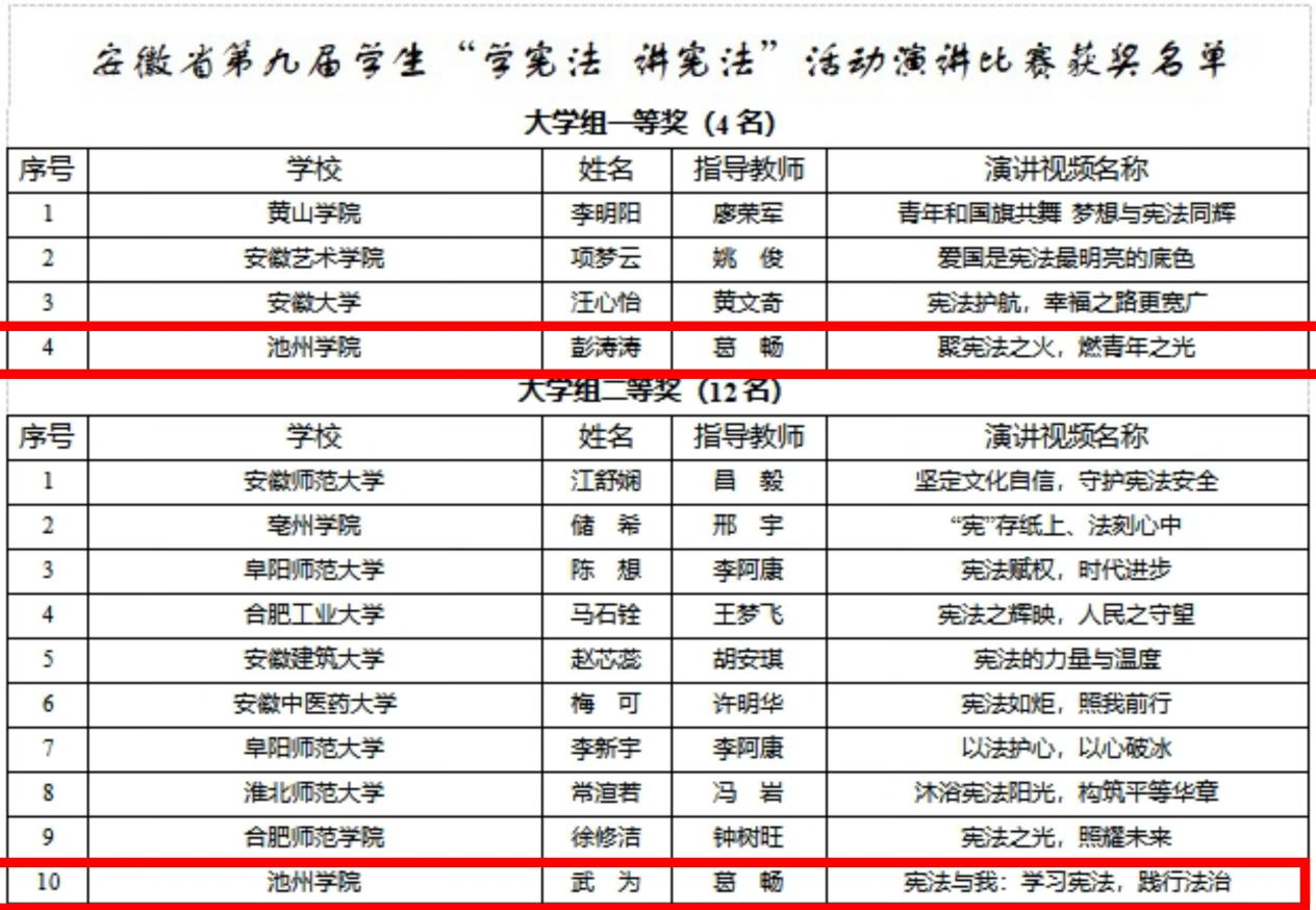 10月8日,省教育厅公布了第九届全省学生“学宪法 讲宪法”活动比赛结果,365英国官网法学院21级知识产权专业学生彭涛涛、365英国上市公司官网22级市场营销专业学生武为分别荣获大学组演讲比赛的一等奖和二等奖;法学院23知识产权专业(专升本)学生王芯妍、22级知识产权专业学生李雨蕊在法治素养竞赛中分别荣获大学组的三等奖和优秀奖。