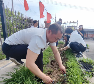 党员同志们和当地干部群众一起合作,共同在村头广场、党群服务中心院内的花坛里栽种花苗。专业教师们一边栽花一边讲解技术要点,党员们充分发挥不怕苦、不怕累的精神,有的负责搬运花苗,有的忙着清理场地、翻整土地,现场一派热火朝天的劳动景象。