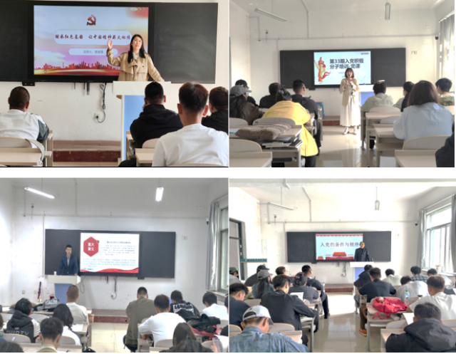 此次培训邀请了李冰淇、史克彬、董亮亮、姜春田、刘新志、张馨宇、郑宁、刘兴红、周巍九位老师,为入党积极分子们讲授了包括党史、党的二十大和二十届二中、三中全会精神、习近平新时代中国特色社会主义思想、《中国共产党章程》、《中共中央政治局贯彻落实中央八项规定实施细则》、《中国共产党纪律处分条例》、《中国共产党廉洁自律准则》、《中国共产党党徽党旗条例》、入党的条件与程序等内容。此外还组织学员围绕主题“坚定理想信念、提升党性修养”进行了专题讨论,观看了榜样事迹、参观了党史长廊。培训期间学员们认真听讲,积极思考,严格遵守培训纪律,展现出良好的精神风貌。