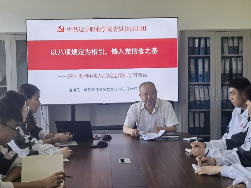 为进一步推动深入贯彻中央八项规定精神学习教育向青年群体延伸,铸牢入党积极分子理想信念、强化责任担当,培育优良学风,动物科技学院党总支书记王维江在党员活动室,为入党积极分子讲授了《以八项规定为指引,铸入党信念之基——深入贯彻中央八项规定精神学习教育》专题党课,为入党积极分子扣紧思想“第一粒扣子”。