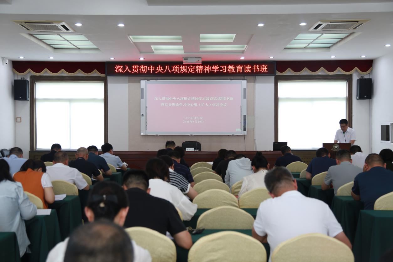 2025年6月20日,学院在办公楼508召开深入贯彻中央八项规定精神学习教育第3期读书班暨党委理论学习中心组(扩大)学习会。学院党委书记刘奕彤作总结讲话,副书记左广成主持会议。学院领导班子成员、党委委员、纪委委员、基层党组织书记、全体中层干部参加学习会。