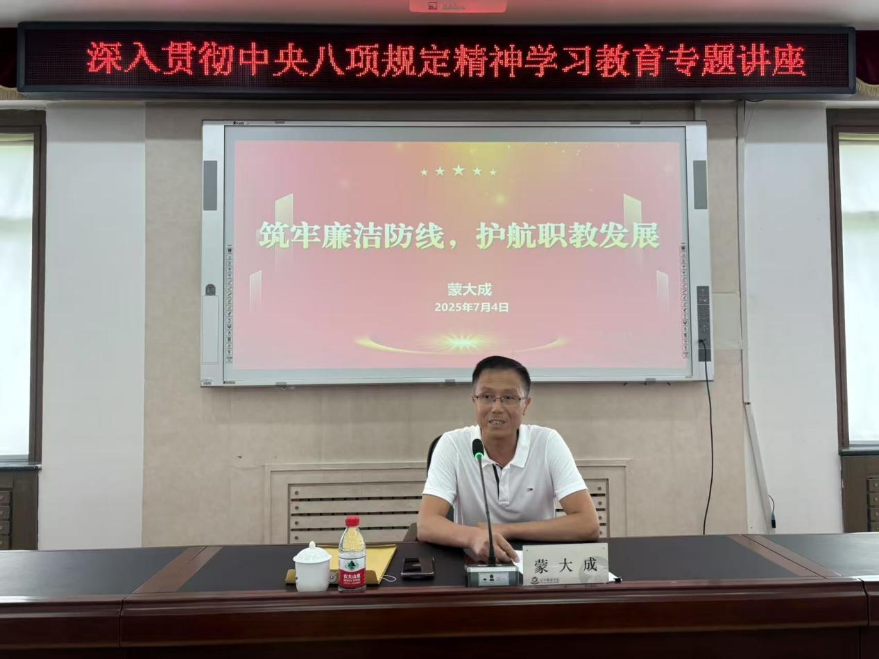 蒙大成结合30余年反腐败一线工作经历,以《筑牢廉洁防线护航职教发展》为题,深度剖析了当前我省教育系统,尤其是高职院校典型案例,以案说德、以案说纪、以案说法、以案说责,教育引导年轻干部、新提拔干部、关键岗位干部在深刻认识高校腐败问题特点及根源、中央八项规定在高校具体实践要求的同时,切实提升自我修养,规范行为举止,守住廉洁底线。讲座聚焦高校实际,内容详实,案例丰富,警示教育直抵人心,是一堂深刻的党性淬炼课、警示教育课、实践指导课。