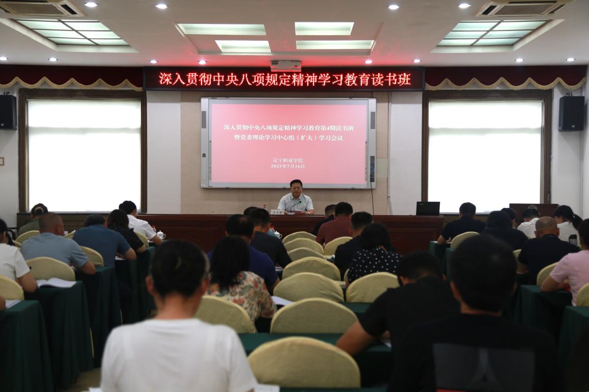 为持续深化对中央八项规定精神的理解与践行,推动全面从严治党向纵深发展,2025年7月16日,学院举办“深入贯彻中央八项规定精神学习教育第4期读书班暨党委理论学习中心组(扩大)学习会”。党委书记刘奕彤讲授专题党课并作总结讲话,副书记孙秀延主持会议。学院领导班子成员、党委委员、纪委委员、基层党组织书记、全体中层干部参加学习会。