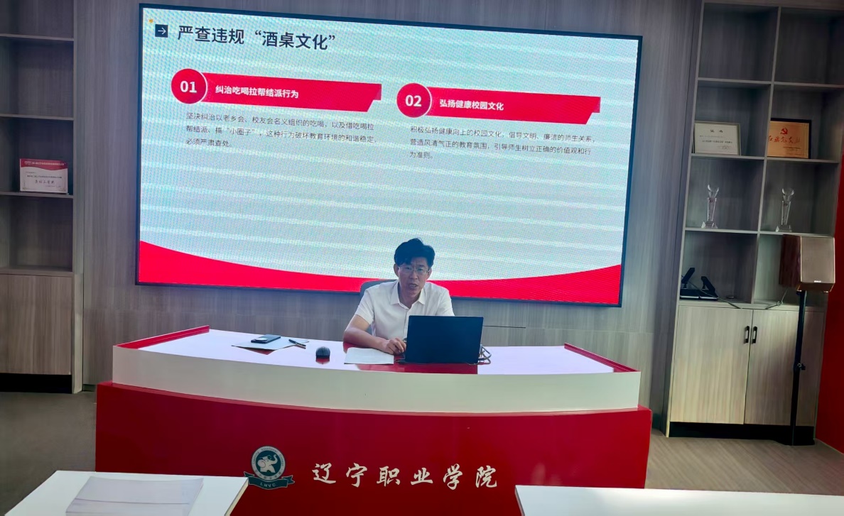 7月15日,学院党委副书记、院长宋连喜,围绕深入贯彻中央八项规定精神学习教育,以“溯源固本淬炼师魂——构筑新时代高职教师廉洁从政防线”为题,为运动休闲与健康学院全体党员讲授生动且深刻的专题党课。