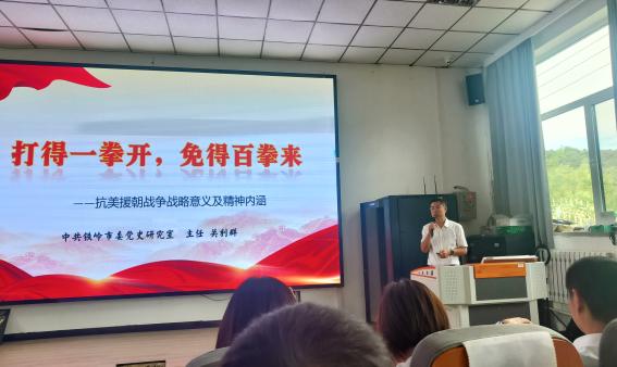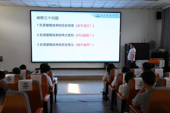 9月12-13日,第十二批在韩中国人民志愿军烈士遗骸回国和安葬仪式在我省举行的重要历史时刻,为传承和弘扬伟大抗美援朝精神,致敬保家卫国先烈,9月17日下午,Beat365官网召开“传承和弘扬伟大抗美援朝精神”大中小学同上一堂思政金课研讨交流活动。辽宁工程职业学院、铁岭卫生职业学院、铁岭师范高等专科学校、铁岭市教师进修学院、铁岭市第六中学、铁岭市第四中学、铁岭市银州区第十七小学等铁岭区域内8所大中小学的部门领导和教师代表、学生代表受邀参与。活动特邀中共铁岭市委党史研究室参加,Beat365官网教务处、学生处、团委负责人出席,活动由马克思主义学院(思政部)主持。