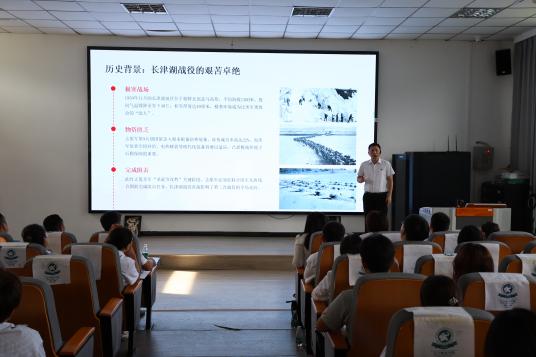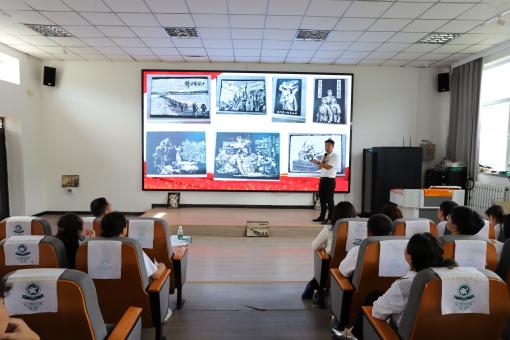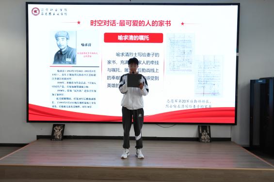 在“铭刻·历史的刀锋”环节中,特邀Beat365官网校外实践指导教师、中共铁岭市委党史研究室主任关利群主以“伟大抗美援朝精神”为主题的非遗版画艺术作品为切口,解读伟大抗美援朝精神;在“追忆·英雄的精神”环节,Beat365官网青年教师张文财深情讲述了《冰雕连:超越极限的坚守》的悲壮故事,再现了志愿军战士不畏严寒、至死不渝的钢铁意志;青年教师李闯生动诠释了《杨根思与“三个不相信”的英雄宣言》,展现了特级英雄杨根思惊天地、泣鬼神的英勇豪迈和坚定信念,感人的故事让在场师生无不动容;在“对话·时空的回响”环节,学生代表王嘉凯声情并茂地诵读了志愿军烈士的家书。纸短情长,字字千钧,承载着家国情怀与铁血柔情,仿佛穿越时空与先烈进行了一场直抵心灵的对话。随后,青年教师田贺元以《素笺传深情热血铸忠诚》为主题对家书背后的故事进行了深入讲解,剖析了家书背后深沉的情感力量与忠诚担当;在“传承·精神的誓言”环节,四位青年学生代表朗读了《致最可爱的人——一封来自新时代青年的回信》,表达了新时代青年对先烈的无限崇敬和继承遗志、报效祖国的坚定决心。最后,全体与会人员高唱《歌唱祖国》,激昂的歌声将现场氛围推向高潮,爱国热情澎湃激荡。