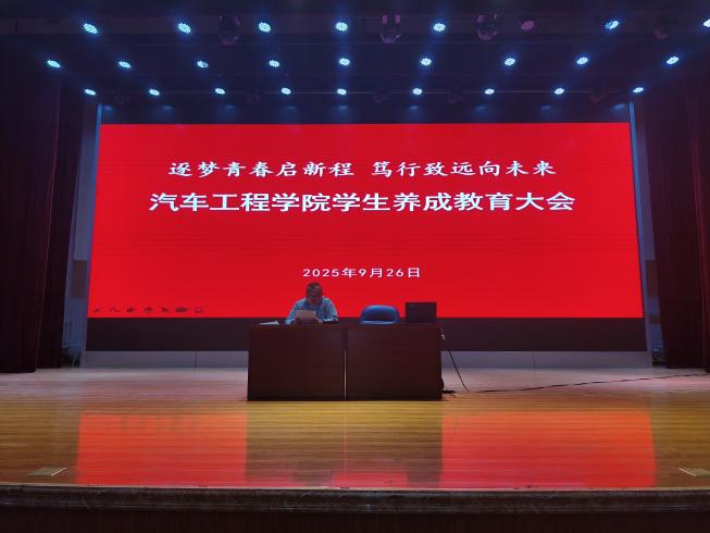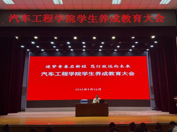 为进一步加强学生养成教育,培养学生良好的行为习惯和道德品质,提高学生综合素质,2025年9月26日上午9点,汽车工程学院在报告厅召开“逐梦青春启新程笃行致远向未来”学生养成教育大会。党总支书记王冬、副书记董亮亮、全体辅导员、班主任及在校学生参加会议。