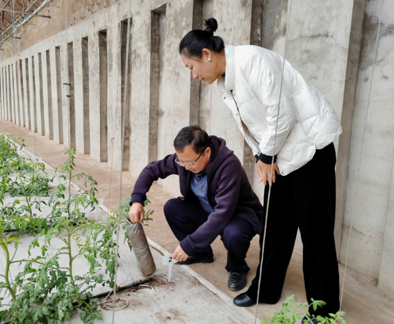 在沈阳农业大学园艺学相关负责人的陪同下,黄艳青院长一行首先参观了番茄实训基地,现场观摩了袋式基质栽培番茄的生长状态与管理模式。基地负责人详细介绍,该模式通过精准控制基质配比与水肥供应,不仅能显著提升番茄产量,还能有效减少土传病害发生,该项目目前处于推广应用阶段。