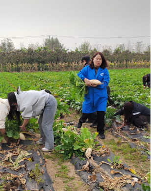 完成2个大棚的棚膜铺设后,师生们又转战萝卜种植区。走进田间,翠绿的萝卜缨生机勃勃,饱满圆润的萝卜静待收获。大家分工明确,有的负责采收,有的进行分拣装筐,有的将新鲜萝卜搬运至储存点,田间地头满是忙碌又热烈的景象。