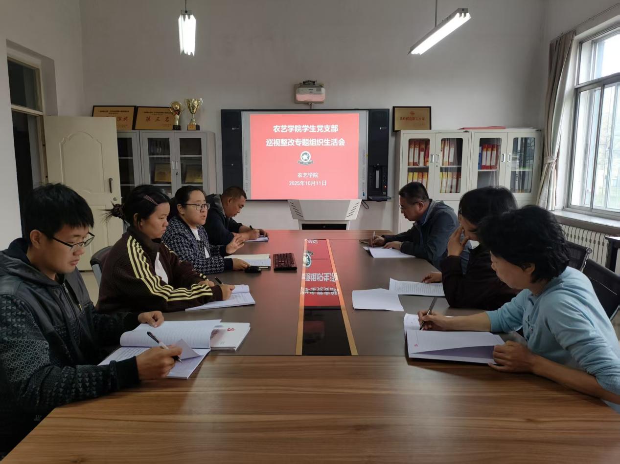 为深入学习贯彻习近平新时代中国特色社会主义思想,全面落实巡视整改工作要求,切实加强基层党组织建设,农艺学院学生党支部于2025年10月10日召开巡视整改专题组织生活会。支部全体党员参会,会议由党支部书记佟斌主持,农艺学院院长焦颖到会指导并作点评讲话。