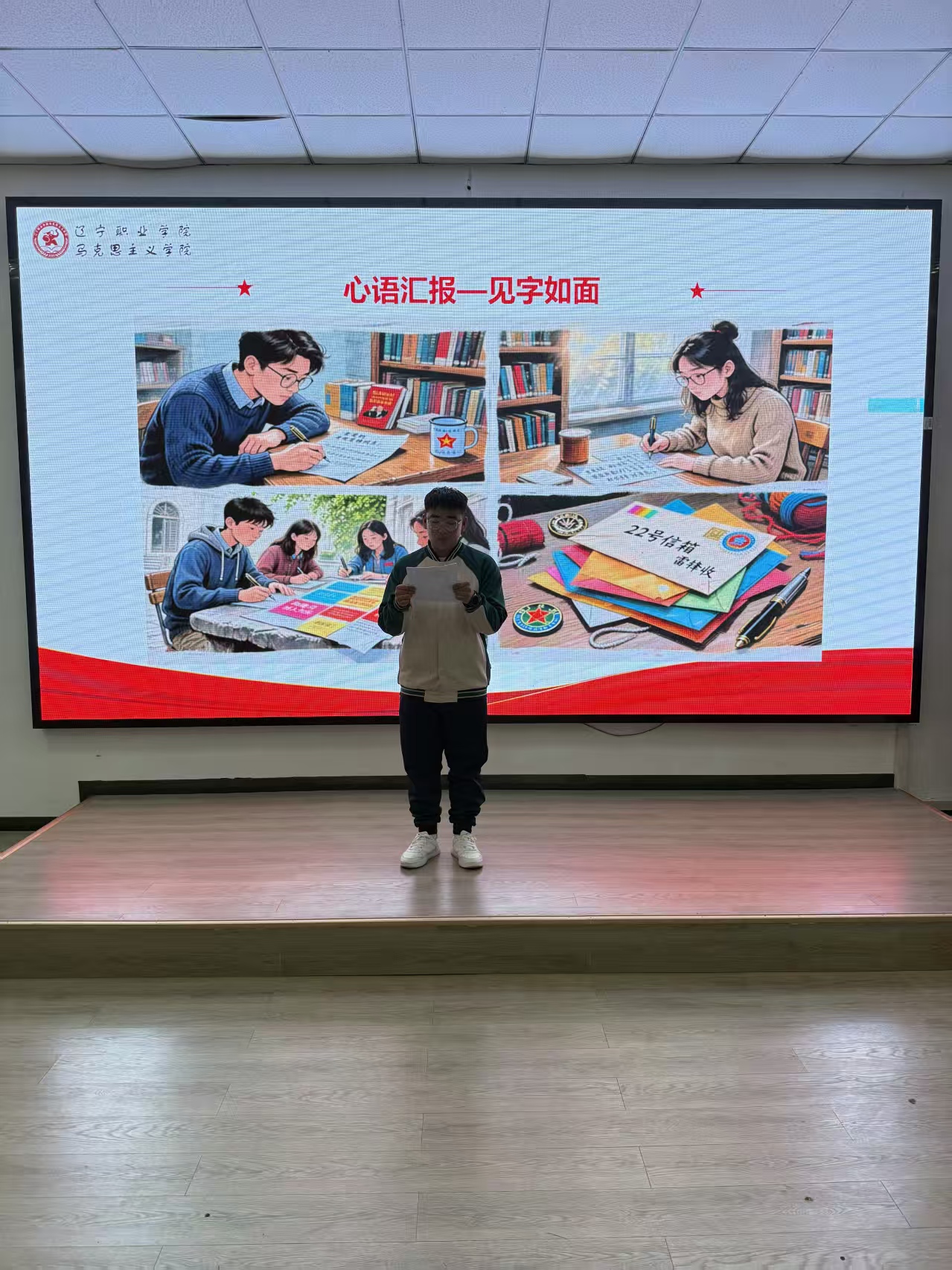 第三篇章“笔墨寄情—心语汇报传承雷锋精神”环节成为活动的情感高潮,百余名学生现场提笔,以“家乡新貌”“青春担当”为主题,给雷锋同志写一封跨越时空的“汇报信”。“如今的铁岭高楼林立,乡村振兴的画卷正徐徐展开,这是您当年憧憬的模样”“我利用周末参与社区敬老服务,虽然辛苦但很快乐,终于懂了您说的‘奉献的幸福’”……笔墨传情,纸短情长,6名学生代表现场诵读书信,字里行间的真情实感,既是对雷锋精神的回应,更是对新时代使命的承诺,将内心的感动与思考付诸笔端,这一笔一划,是两代青年之间的隔空回应,更是新时代学子用笔墨书写的关于责任与担当的青春答卷。