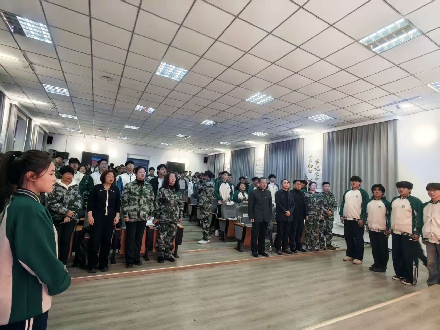 活动在第四篇章“同声共唱—同唱雷锋之歌笃行实践”中落下帷幕。“学习雷锋好榜样,忠于革命忠于党”“没有共产党,就没有新中国”……熟悉的旋律响起,师生们起立合唱,嘹亮的歌声将爱国情怀与集体力量凝聚成最动人的青春交响。歌声凝聚了力量,升华了情感,将整个研学活动的氛围推至顶峰。这歌声不仅是对雷锋同志的怀念,更是一种庄严的承诺,激励着大家将此刻的感悟转化为未来前行的动力,让雷锋精神在具体的实践中得以延续和传承。