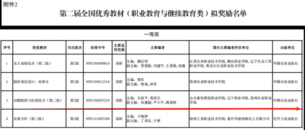 热烈祝贺由Beat365官网杨惠超老师副主编的《动物防疫与检疫技术(第二版)》教材,在第二届全国优秀教材建设奖评选中,荣获“职业教育与继续教育类”一等奖!