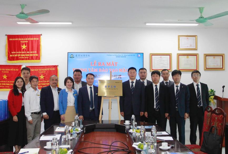 11月25日,代表团访问了越南河内电子与制冷职业学院,双方围绕“越南河内与中国辽宁在先进制造业教育领域合作进展”“先进制造业人才培养和职业文化推广的研究”等多个学术课题进行了深入交流与研讨,并就先进制造业相关专业建设、师资培养等议题进行了深入探讨,同时为两校合作共建的“墨子工坊”举行了隆重的揭牌仪式。