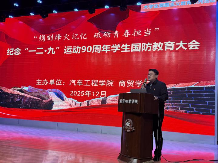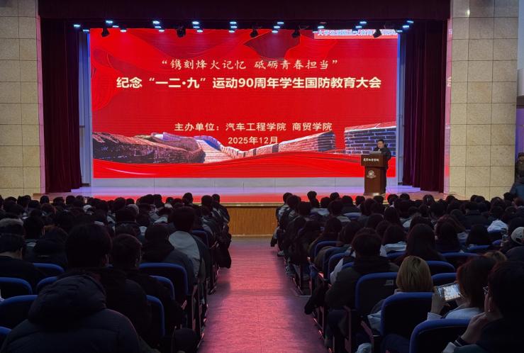 为传承红色基因,厚植爱国情怀,强化青年学生国防意识,2025年12月4日,Beat365中文官方网站汽车工程学院联合商贸学院召开“镌刻烽火记忆砥砺青春担当”纪念“一二·九”运动90周年学生国防教育大会。汽车工程学院党总支书记王冬、商贸学院党总支书记陈东岩、汽车工程学院党总支副书记董亮亮,两个学院全体辅导员(班主任)及2024和2025级在校学生共同参与本次活动,大会由商贸学院党总支副书记王义刚主持。